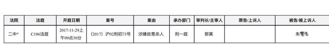 根据上海市高级人民法院公布的开庭信息,备受关注的“虹口杀妻藏尸案”将于11月29日在上海市第二中级人民法院公开开庭审理,排庭信息显示,被告人朱某被控故意杀人罪。